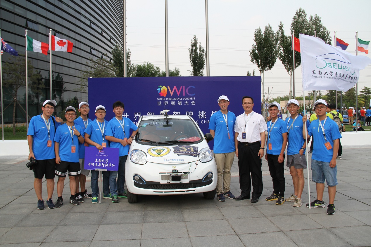 参加此次比赛的东南大学奇瑞至善智能车队的队员全部来自机械工程学院,分别是汪瑞杰、朱卫刚、王晓龙、叶建伟、吴丛磊、刘帅鹏、刘赢、邹伟、梁晋豪、吴愿等研究生。他们秉持着永不放弃、勇攀高峰的精神,克服了时间紧、任务重的挑战,冷静高效地解决了接连出现的突发事故,顺利研制出参赛原型车。他们紧握着不怕吃苦、精益求精的品格,顶着天津连日的酷暑高温,在测试和比赛场地反复对原型车进行调试,最终圆满完成了赛前制定的目标,为东南大学赢得殊荣。