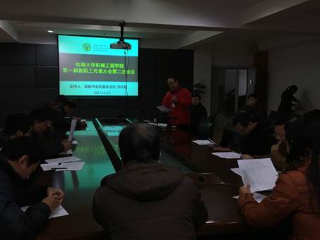 2017年12月14日中午12:30,机械工程学院第一届教职工代表大会第二次会议在机械楼南高厅隆重召开!共有49名院教代会代表、1名列席代表和4名特邀代表参加了本次会议。会议由学院教代会执委会主任张志胜同志主持。