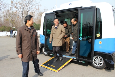 东南大学与南京扬子国资投资集团去年签署了共建智能网联交通研究平台的战略合作备忘录,打造国家级智能网联交通示范区。作为“江北新区智能网联交通”首批重点项目,“无人驾驶迷你公交”系统示范区建设已正式启动。前期,东南大学联合扬子国投已完成在全球范围内对该领域最先进的设备系统进行摸底调研和专家论证,本次首发试运行的智能网联无人迷你巴士是由扬子国投根据智能网联交通示范区的发展需求而度身订制的,东南大学机械工程学院相关科研团队将负责后期运营管理、科研平台搭建与智能网联汽车技术的再开发。