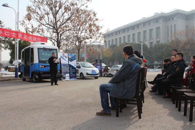 2018年2月2日上午,东南大学联合南京扬子国资投资集团有限责任公司在东南大学九龙湖校区举行合作运营的国内首辆智能网联无人迷你巴士的首发试运行,东南大学副校长吴刚教授,扬子国投集团董事长蔡龙,机械工程学院党委书记张志胜,学校相关部门负责人,以及巴士运营团队全体成员参加了首发试运行活动。发布会由机械工程学院副院长殷国栋教授主持。