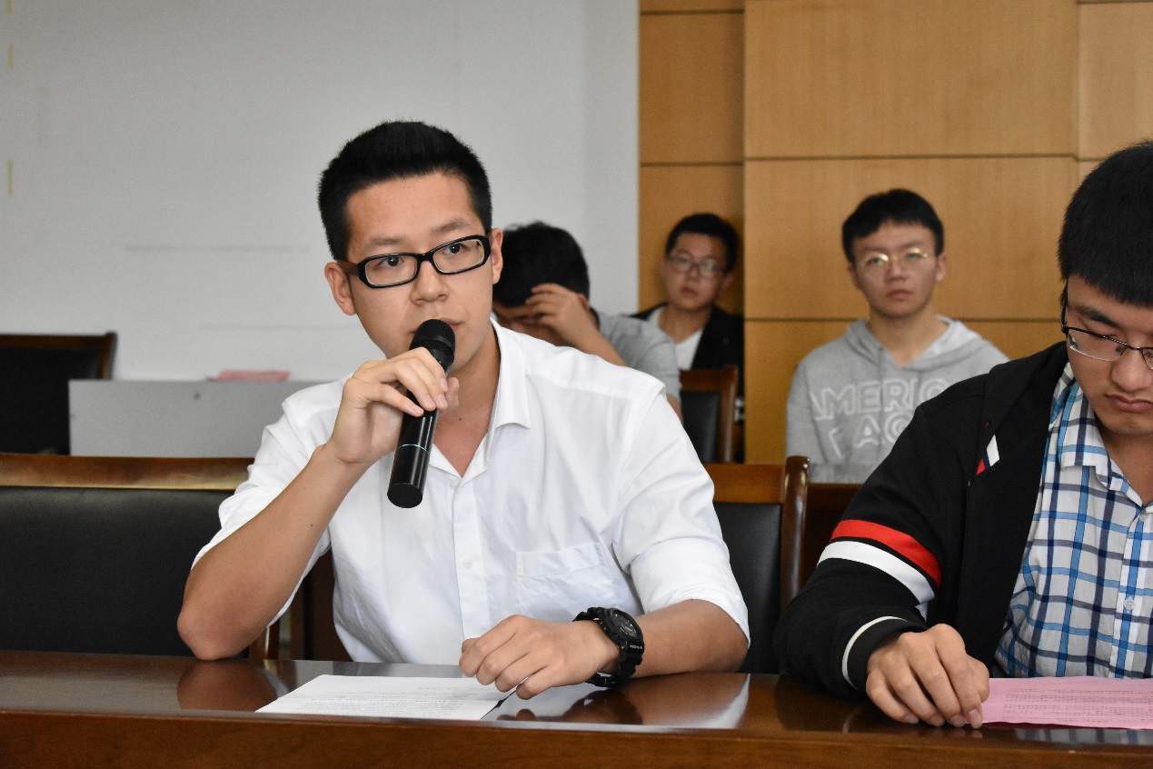 邢佑强老师结合自身工作经历,表达了希望学院能够加大学生人文素养的培养力度,也希望学生们能够自我思考,重视人际交流的方式与效果,不能因为工科现实就忽视自己的人文情怀。2015级本科生何宗杰也以自己三年来的学生工作经验说明了这一问题的的重要性。杨雯皓同学一并提出在人文情怀的基础上,我们学生还要培养自己的家国情怀,以国为荣,为国奉献。