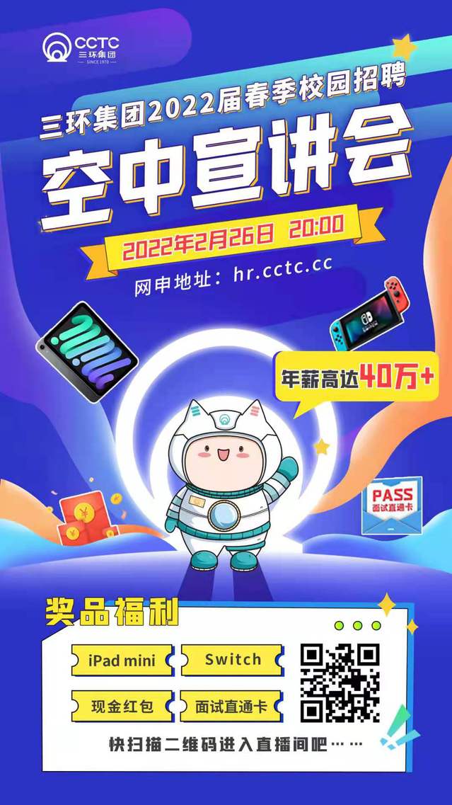②手机端:公众号【CCTC三环招聘】,点击“加入三环”-“校园招聘”即可投递简历