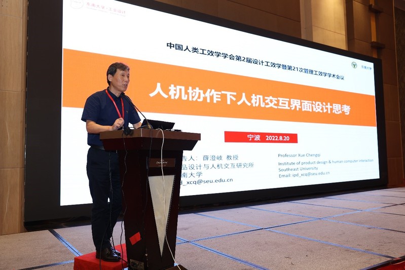 中国人类工效学学会设计工效学分会主任委员东南大学薛澄岐教授做了“人机协作下人机交互界面设计思考”的大会主旨报告,详细系统地介绍了本领域国内外研究现状和进展,提出了关于人机协作下人机交互界面设计的研究聚焦和发展趋势。工业设计系青年老师牛亚峰副教授和周小舟老师分别做了题为“眼控系统视触觉交互机制研究:以手功能障碍人群为例”和“虚拟手交互的行为绩效测评方法研究”的分会场报告。