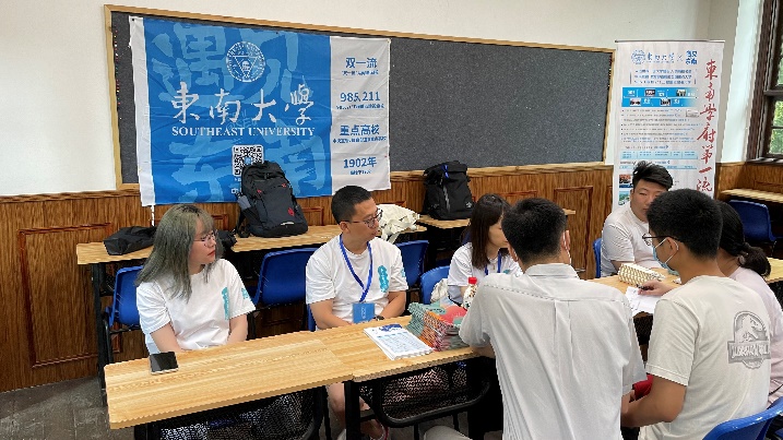 四川招生宣传组在高招季克服困难,赴四川省成都、绵阳、南充、泸州等生源重点地区组织了50多场线下咨询会,深入各个重点高中,掌握了80%以上对东南大学感兴趣的优秀生源信息并提供了100%的电话回访,为超过450位同学提供了一对一招生政策解答。