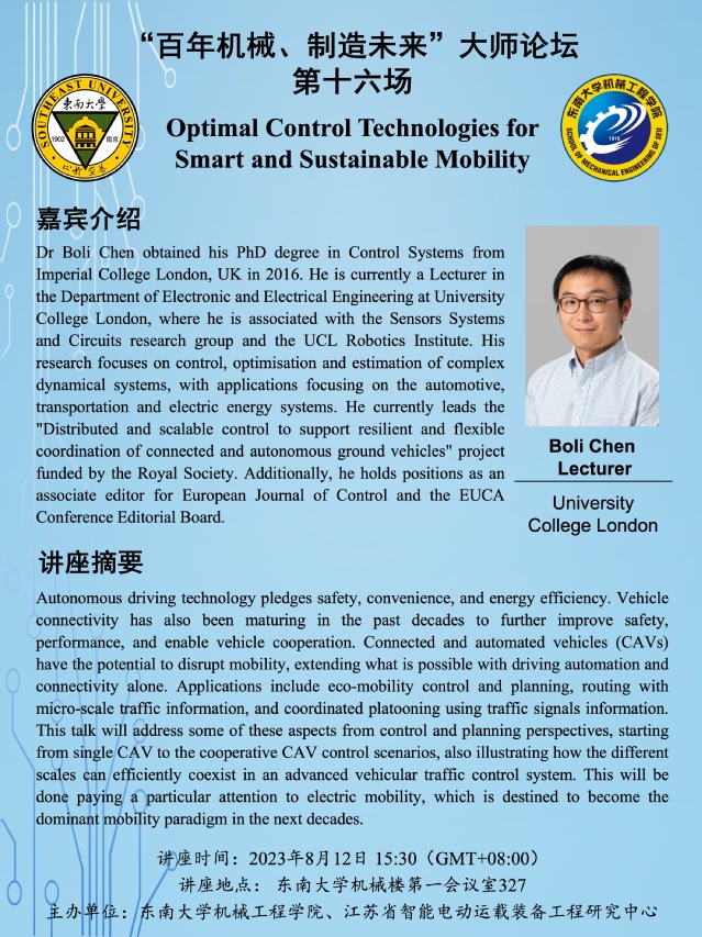 讲座地点: 东南大学机械楼第一会议室327