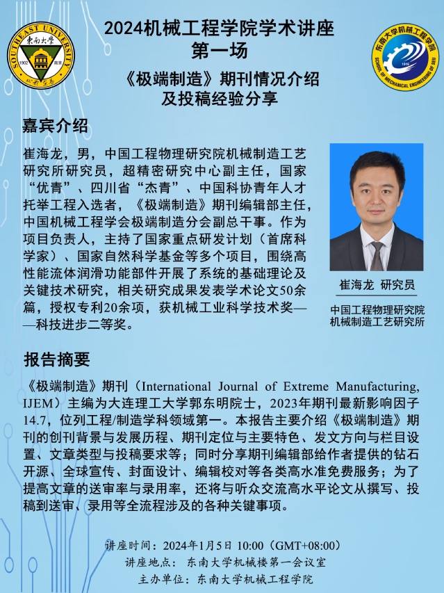 讲座地点: 东南大学机械楼第一会议室