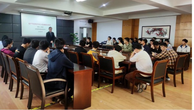 讲解环节结束后,与会师生们积极与肖佐楠经理进行互动并提问。肖佐楠经理细致地与师生们交流了关于国产车规中高端MCU芯片的知识,强调了CPU、功能安全、核心IP、可靠性设计等关键技术的重要性,有望促进国产车规中高端MCU芯片的发展。