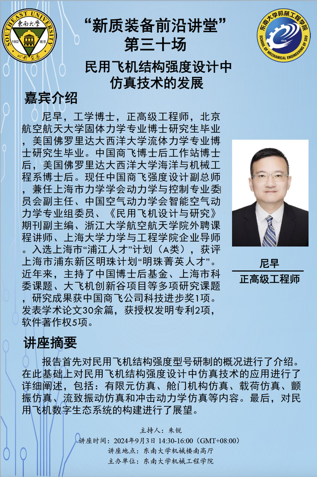 “新质装备前沿讲堂” 第三十场:尼早高级工程师——民用飞机结构强度设计中仿真技术的发展