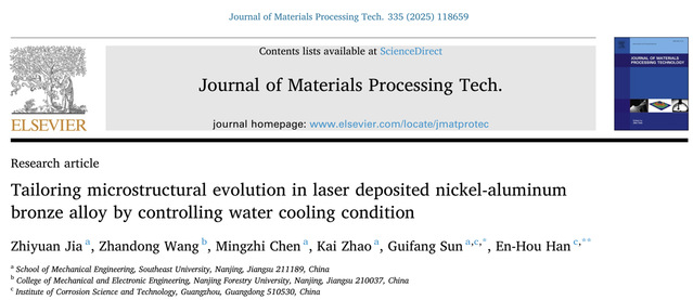 近日,华体会官方端网站登录入口孙桂芳教授与广东腐蚀科学与技术创新研究院韩恩厚院士团队合作在通过水冷条件控制镍铝青铜合金微观结构演变取得重要进展。受镍铝青铜水下原位修复应用需求的启发,研究提出水冷条件是否有利于修复过程中形成适当的冷却速率,以防止粗大κ相的形成。采用陆上激光直接金属沉积和水下激光直接金属沉积技术对镍铝青铜基板上的梯形凹槽进行修复,系统阐明了快速冷却速率对于镍铝青铜多类型κ析出相的多重影响。相关研究成果已于近日发表在国际制造领域顶TOP期刊《Journal of Materials Processing Technology》。
