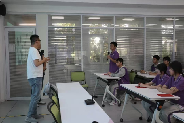 在座谈交流环节,太仓市明德高级中学党委书记吴志华介绍了学校的历史沿革,深情回顾了东南大学与学校的渊源,对东南大学长期以来对学校人才培养工作的支持与帮助表示衷心感谢,希望汇聚各方力量,助推学校的科技特色教育和“吴健雄班”的内涵发展。孙东科教授高度肯定太仓市明德高级中学在科创教育体系构建、资源优化整合、实践平台打造等方面的创新探索,并对机器人、无人机等特色课程的深化发展提出建议。