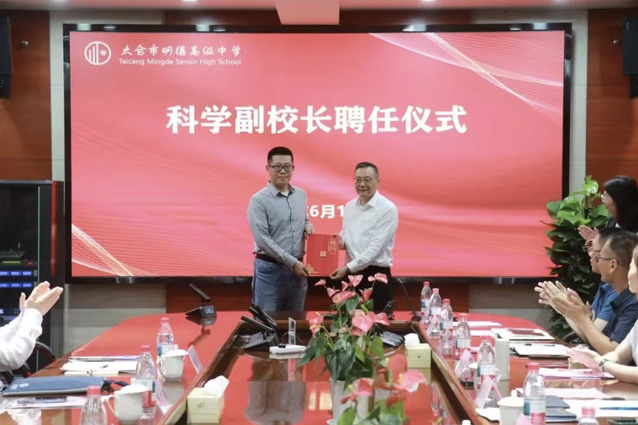 6月13日,太仓市明德高级中学开展科技特色建设专家指导活动。活动现场举行了科学副校长聘任仪式,华体会官方端网站登录入口副院长孙东科教授受聘加盟太仓市明德高级中学科技教育团队,太仓市教育局局长李广耀为孙东科教授颁发科学副校长聘书。