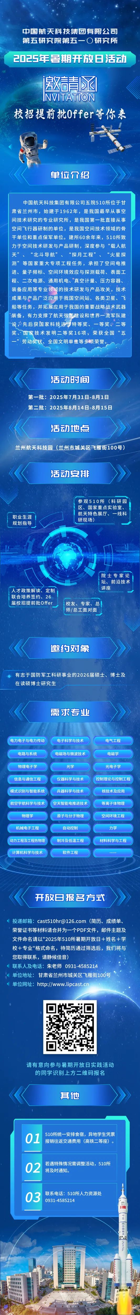 期待你的加入 | 中国航天科技集团有限公司第五研究院第五一〇研究所(510所)2025年暑期开放日实践活动正式启动