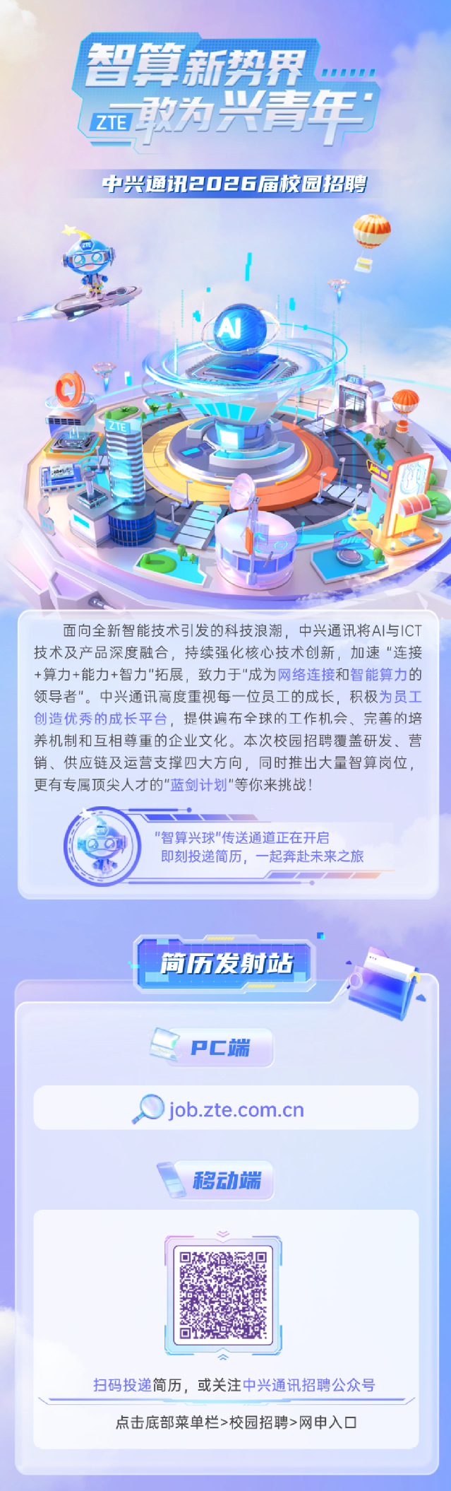 招聘 | 中兴通讯2026届校园招聘正式启动