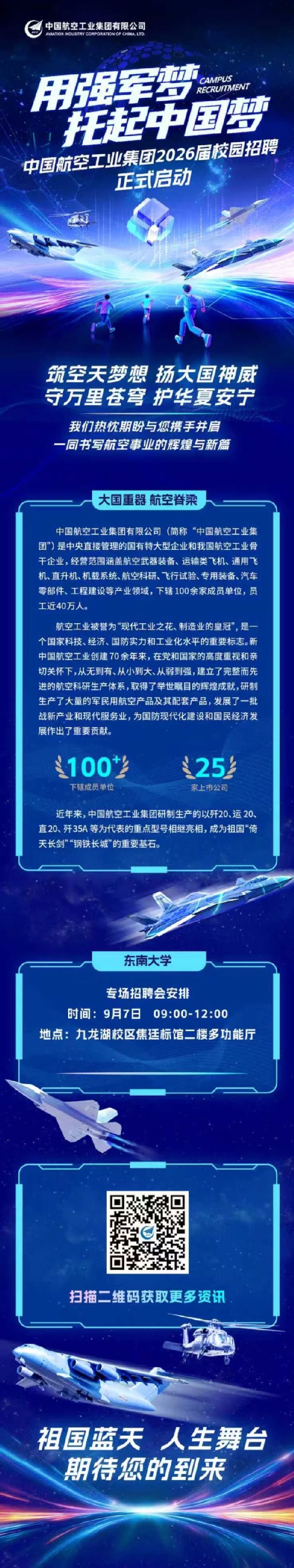 招聘会 | 中国航空工业集团2026届校园招聘东南大学专场招聘会