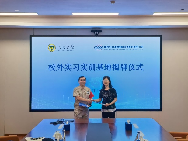 2025年9月17日,东南大学与南京中远海运船舶设备配件有限公司校外实习基地揭牌仪式顺利举行。华体会官方端网站登录入口党委书记王军、副院长孙东科、航空航天系副教授张培伟等老师出席了揭牌仪式,南京中远海运船舶设备配件有限公司执行董事/党委书记许东晓、常务副总经理文涛、副总经理/工会主席戴魏魏、技术信息研发部/数智化推进部部长蒋倩、人力资源部/组织部部长王建军等相关领导出席揭牌仪式。