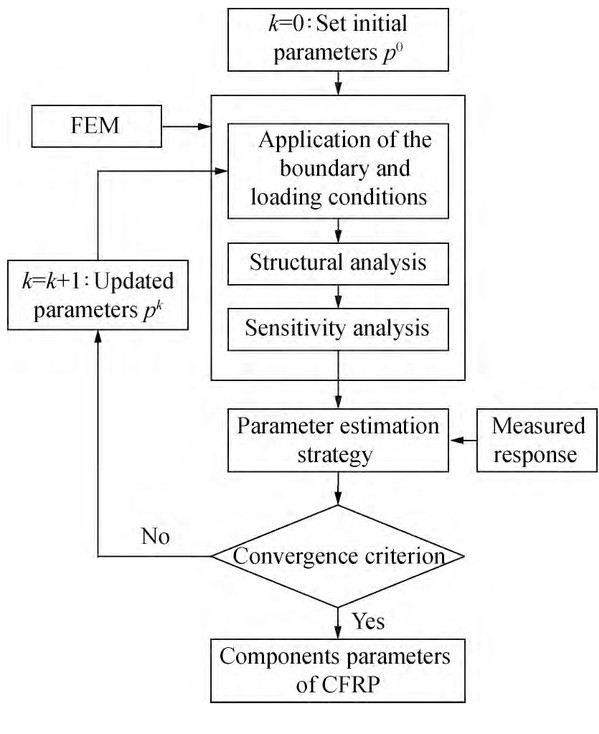 为了获取准确的复合材料细观模型,提出了一种复合材料组分参数识别方法。在细观单向碳纤维增强树脂基复合材料(CFRP)有限元模型基础上,构造静态位移场对复合材料组分弹性参数的灵敏度矩阵,以测量位移和有限元计算位移差的二范数为目标函数,针对待识别参数量纲差异较大的问题,利用相对灵敏度提高材料组分弹性参数识别的精度和效率。以纤维均匀分布的复合材料平面模型和纤维随机分布的复合材料实体模型为研究对象,验证所提出组分参数识别方法的有效性和准确性。此外,研究了测点数目及测量误差对识别结果的影响。结果表明:本文提出的复合材料组分参数识别方法在测点数目变化和测量误差影响下仍然稳定。
