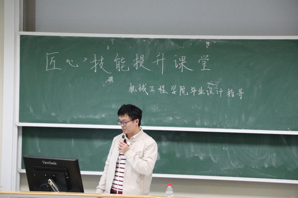 为帮助机械工程学院17级学生梳理毕业设计进程,保证学生能够高质量地完成毕业设计论文,11月17日晚18:30,机械工程学院开展了“匠•心”能力提升课堂毕业设计论文指导与分享活动,围绕当前毕业生最关心的毕设论文相关问题进行针对性指导、分享与解答。机械工程学院18级博士生汪䶮学长、机械工程学院团委副书记、17级本科生辅导员侯煜淋老师出席本次活动。本次活动由机械工程学院19级本科生张速恒主持。