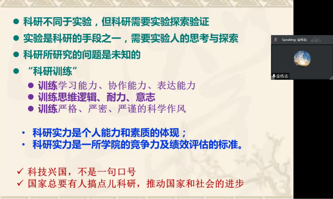 2月14日下午,创新创业训练交流首场线上讲座开讲,由机械工程学院课外研学秘书金传志老师对SRTP项目进行深度讲解。金老师强调科研并不神秘,缜密的思考和强烈的探索欲就是揭开未知的武器。他以自己当年写博士毕业论文的经历,引出如何训练科研思维的话题,并以此向同学们介绍SRTP项目。在讲座的最后,同学们就自己对创新创业项目的疑惑向金老师提问,老师一一做了详细解答。