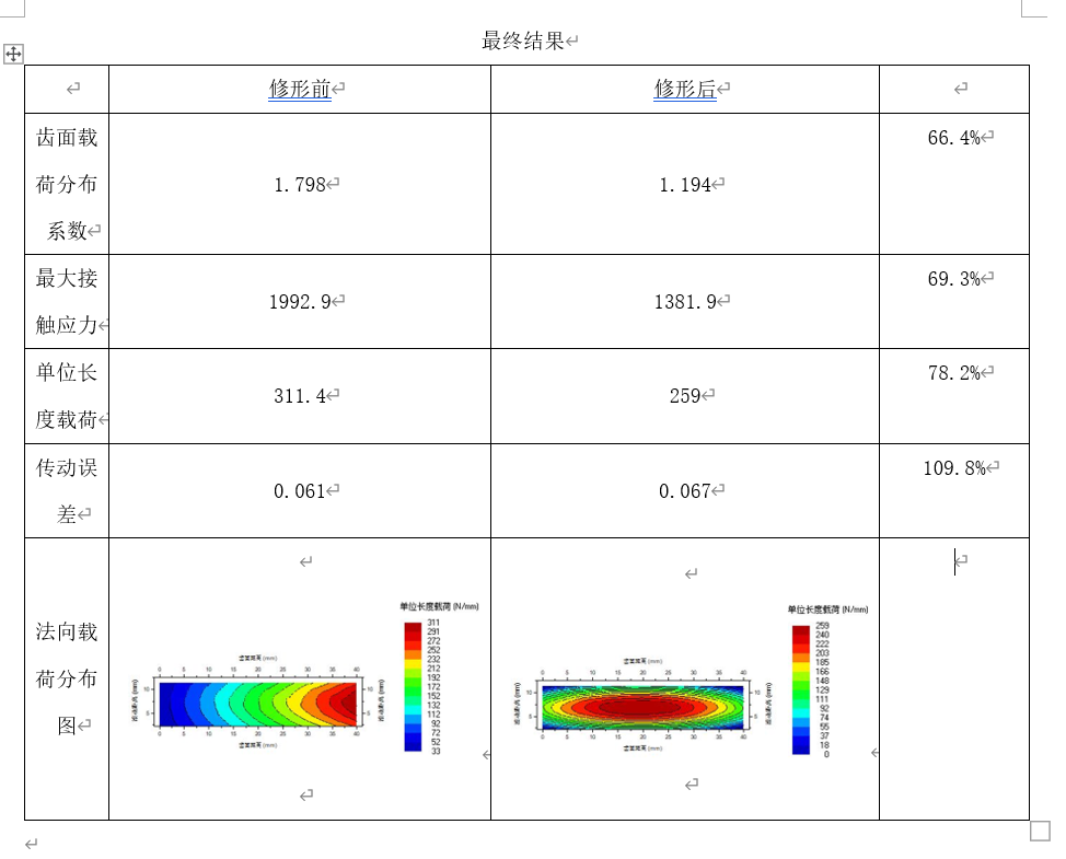 利用KISSsys软件得出的配齿参数,在Romax软件里建立模型并进行仿真,修形前后齿面载荷分布系数、最大接触应力、单位载荷长度、法向载荷分布均得到改善,传动误差略有增加但修形后数据在合理范围内;