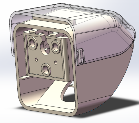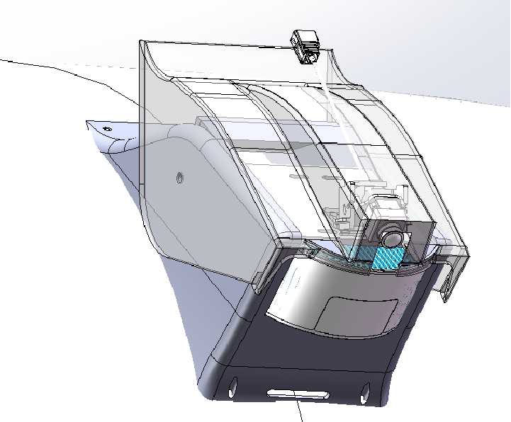 本项目负责对无人驾驶汽车雷达、摄像头结构优化设计。1)无人驾驶汽车雷达支架疏水结构优化设计;2)无人驾驶摄像头与雷达支架一体化设计;3)车辆侧摄像头防漏水方案设计。本小组完成了优化结构的设计和三维建模。