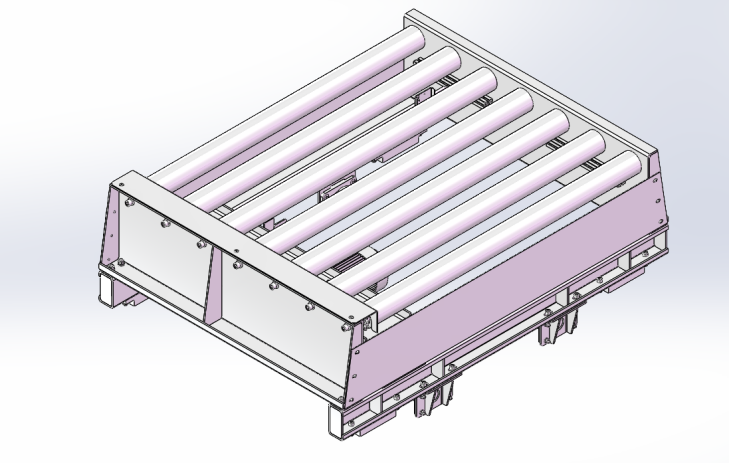 四向物流小车模型的建立。完成了小车中驱动轮系、货叉同步带结构、货叉叉板、货叉拉钩和小车框架的模型建立。