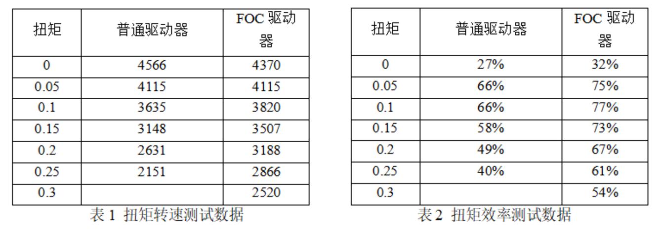 求出普通驱动和FOC驱动控制下的输入输出功率,将输出功率与输入功率相比即可得到不同扭矩下的效率值。