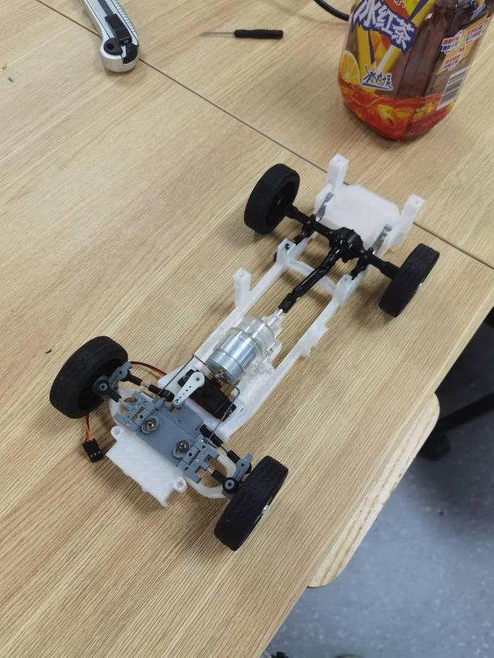 3.打印模型、安装测试:在三维软件中测得新车重心位置,验证方案可行性,而后将模型进行3D打印并完成装配,得到新的微型货车底盘。